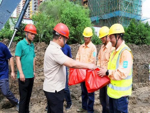 8月驕陽似火,熱浪滾滾,基層員工一如既往地恪盡職守,戰高溫,斗酷暑,為全市人民安全用水保駕護航。在嘈雜的泵房、在炙熱的工地、在……公司領導與員工親切交談,詳細了解他們的工作環境和身體狀況,將一份份解暑降溫慰問品送到他們手中,并再三囑咐合理安排好作息時間,做好防暑降溫、疫情防控及勞動防護措施。